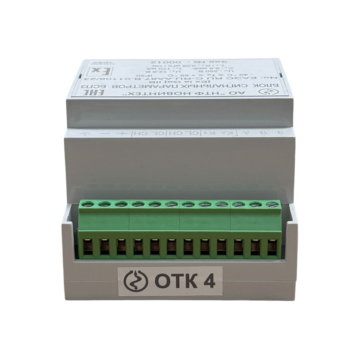 Все искробезопасные линии связи БСП имеют защиту от перенапряжений. Питание от БП1 подключается к клеммам “+12”, “0” БСП. Напряжение плюс 12 В используетсядля формирования искробезопасного питания измерительных каналов. Клеммы “Э”, “A”, “B” вискроопасной части БСП используются для технологических целей.